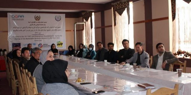 On Thursday, 28th Feb, 2021, Department of Labor and Social Affairs/DoLSA with cooperation of Help INGO and Organization for Sustainable Aid in Afghanistan /OSAA organized the 15th TVET and Employment Round-Table Meeting under the title of “The 15th TVET and Employment Roundtable for sharing the findings of the Marketable Vocations Research in the West Zone” in Women Empowerment and Social Association/WESA Conference Room in Herat province.In this roundtable meeting, representatives from Govt. Dept. including Department of Labor and Social Affairs/DoLSA, Dept. of Commerce and Industry, Afghan Women Chamber of Commerce, Industries (AWCCI) as well as representatives from I/NGO and private sector ،Organization Altaf, NSDP, AHDAA, Herat University (Economy Faculty, ،WVA، WISE، NRC, Help INGO, RSDO, WISE, Marcy core and Women’s Empowerment and Social Association /WESA were attended.At the beginning of the meeting, Mrs. Mehr Mahtab Ahmadi from OSAA, welcomed the participants to the 15th TVET and Employment Roundtable Meeting.The Meeting officially started by reciting the Holy Quran, after that participants introduced them self.